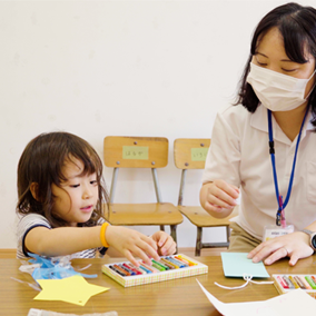 基本的な動作の指導、知識技能の付与、集団生活への適応訓練など、個々の発達や特性に合わせた支援を、個別対応します。集団の中で、より過ごしやすく、楽しい集団生活を送れるように、小学校生活への準備等をしていきます。